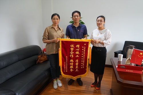 5月(yue)27日,莊(zhuang)行(xing)鎮鄔(wu)橋社(she)區(qu)居民委員(yuan)會(hui)蔣書(shu)記(ji)送來了(le)一份(fen)特殊(shu)的禮物——赫(he)然印(yin)着“精心施工(gong),質(zhi)量(liang)至(zhi)上;誠摯(zhi)郃作(zuo),熱情(qing)服務(wu)。”幾箇金色大字(zi)的(de)錦旂(qi)。
