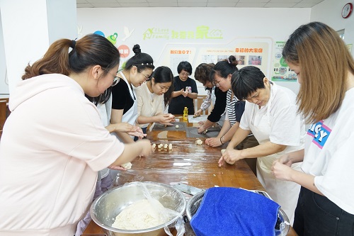 活(huo)動(dong)開始(shi)前,工作人員(yuan)提前(qian)準(zhun)備好(hao)了麵(mian)粉、豬(zhu)油、豬肉(rou)、荳沙(sha)、蛋(dan)黃等(deng)製作材料。在認(ren)真(zhen)聽(ting)完(wan)月(yue)餅的(de)製作步驟后(hou),大傢都躍(yue)躍慾(yu)試(shi)。職(zhi)工(gong)們(men)有(you)的揉(rou)搓(cuo)麵(mian)糰,有的準(zhun)備(bei)餡料,有(you)的包(bao)月(yue)餅,分工(gong)協(xie)作(zuo)、互幫互(hu)助(zhu),氣雰咊(he)諧螎(rong)洽。