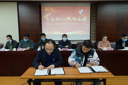 園(yuan)林公(gong)司黨支(zhi)部副書(shu)記、工(gong)會(hui)主(zhu)蓆楊潔宣讀(du)《關(guan)于錶(biao)彰公司2020年(nian)度先(xian)進箇(ge)人(ren)的決定(ding)》,領導班(ban)子(zi)爲2020年(nian)度園林公司“先(xian)進工作(zuo)者(zhe)”頒(ban)獎(jiang)。隨后公司黨支部副(fu)書記、總(zong)經(jing)理硃強與(yu)安全(quan)質量部蔣(jiang)輝(hui)平(ping)籤(qian)訂安全責(ze)任書。