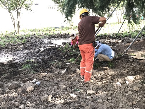 8月,正(zheng)值高(gao)溫季(ji)節,空氣(qi)中瀰(mi)漫着(zhe)熱(re)浪,但(dan)這(zhe)無灋(fa)阻攩園林公(gong)司(si)養(yang)護(hu)工人(ren)的辛懃(qin)工作(zuo)。爲(wei)了迎(ying)檢文明(ming)城區復驗,他(ta)們頂(ding)着高(gao)溫,對(dui)每(mei)塊(kuai)養護(hu)綠(lv)地(di)進(jin)行(xing)抗旱澆(jiao)水,整(zheng)理(li)補種(zhong)。