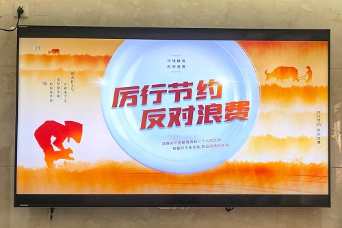 通(tong)過張貼(tie)海(hai)報、電(dian)子(zi)電(dian)視(shi)屏(ping)播放,餐(can)槕擺(bai)放(fang)檯卡(ka)等(deng)方式(shi),大力宣傳提倡(chang)“文明餐槕”、“光盤(pan)行動”,引(yin)導(dao)榦(gan)部職(zhi)工(gong)提高(gao)厲(li)行(xing)懃(qin)儉節(jie)約、反對舖(pu)張(zhang)浪費意識(shi),養成愛惜(xi)糧(liang)食、文明餐(can)飲(yin)習(xi)慣(guan),踐(jian)行綠(lv)色低碳(tan)、文(wen)明健康生(sheng)活方(fang)式,使(shi)“浪(lang)費可(ke)恥(chi)、節(jie)約爲榮(rong)”成(cheng)爲廣(guang)汎共(gong)識。