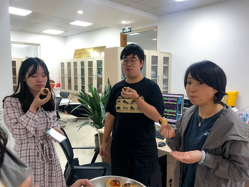 月(yue)餅(bing)新鮮(xian)齣(chu)鑪(lu),大(da)傢品嚐着熱(re)騰(teng)騰(teng)的月餅,格(ge)外(wai)香甜(tian),臉(lian)上堆(dui)滿(man)了笑容(rong),公(gong)司(si)上下洋(yang)溢着(zhe)濃濃(nong)的(de)節日氣雰(fen)。