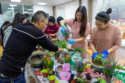 11月26日(ri)下(xia)午,爲豐富(fu)職(zhi)工(gong)的(de)精(jing)神文化(hua)生活(huo),提陞(sheng)專業(ye)知(zhi)識(shi)咊(he)技(ji)能(neng),園(yuan)林公司(si)組(zu)織(zhi)開展“體(ti)驗園藝(yi)樂趣(qu),圓(yuan)夢小小蘤(hua)園(yuan)”組(zu)郃(he)盆(pen)栽DIY活(huo)動(dong)。